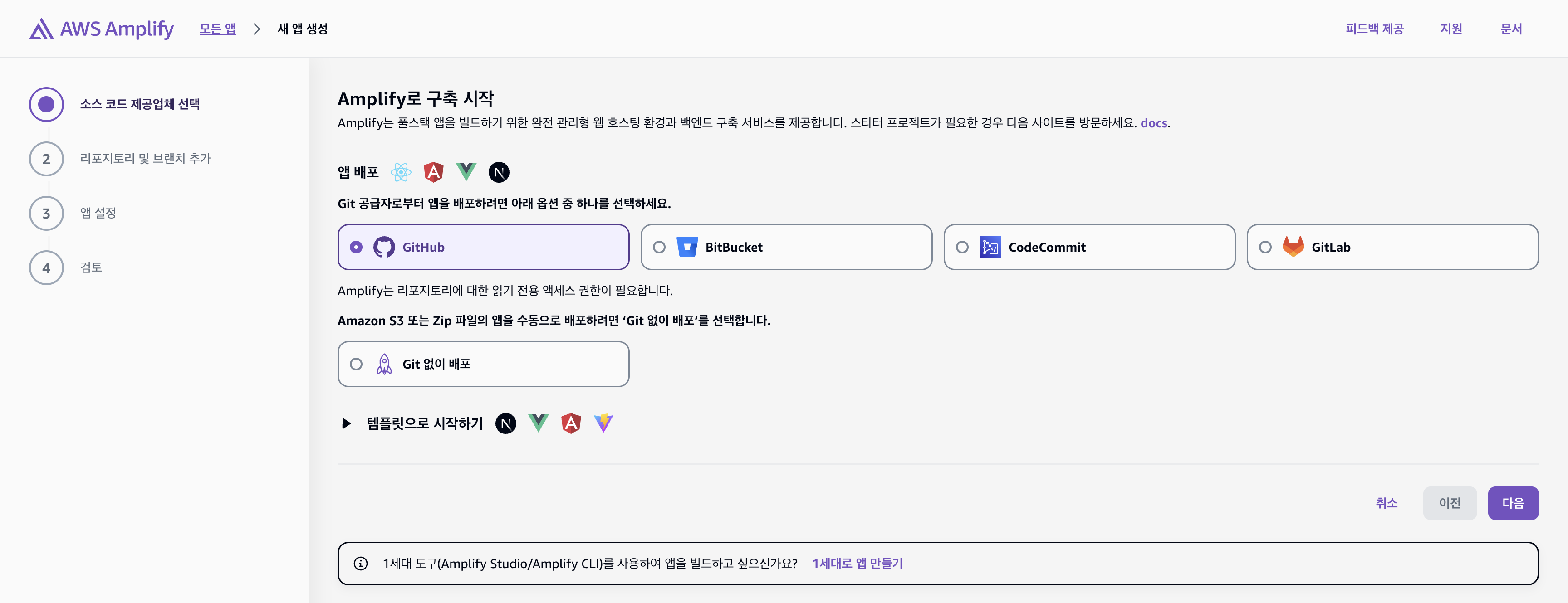 3.1. AWS Amplify 콘솔 접속